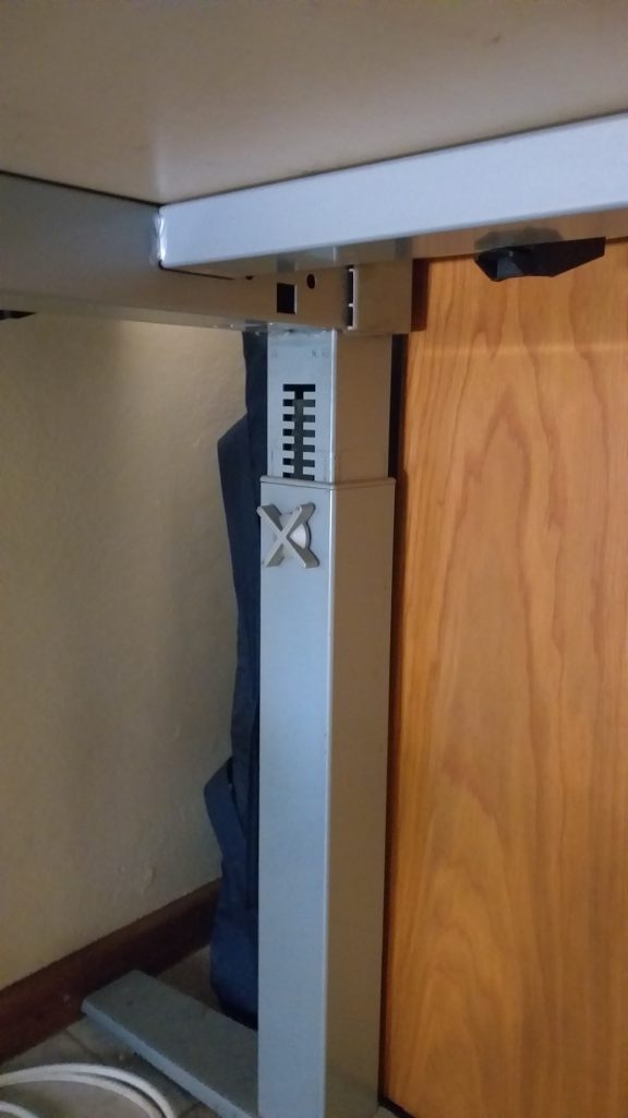 Unfortunately, after I took it home I discovered that adjusting the height required me to climb under the desk, unscrew two large locking screws, manually raise the stand on either side and then tighten the screws again. This desk was meant to be set to one position, either standing or sitting, and not meant to be used to switch between either during the course of a day.